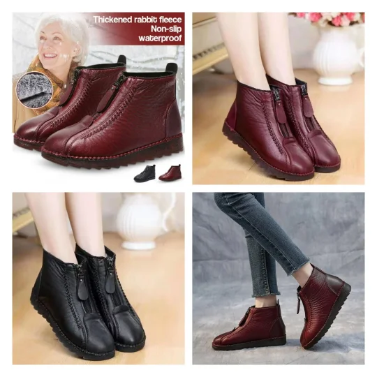 🔥 Zimní dámské kožené boty s hřejivou podšívkou|Pohodlí · Protiskluzové · Voděodolné